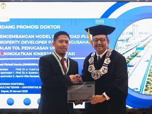 Dalam upaya mencari solusi strategis, Remi Fitriadi Kurnia, mahasiswa Program Doktor Teknik Sipil FT-UI sekaligus Vice President Strategic Planning PT Hutama Karya (Persero) (Hutama Karya), mengembangkan model bisnis inovatif melalui disertasinya yang berjudul “Pengembangan Model Bisnis Road Plus Property Developer pada Pengusahaan Jalan Tol Penugasan untuk Meningkatkan Kinerja Investasi”.