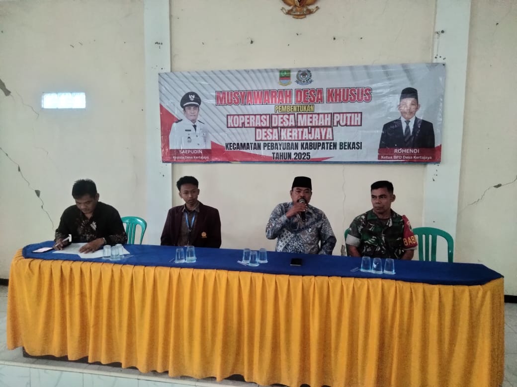 Mahasiswa KKN Disambut Hangat, Koramil 11/Pebayuran dan Aparatur Desa Kertajaya Gelar Komsos di Aula Desa