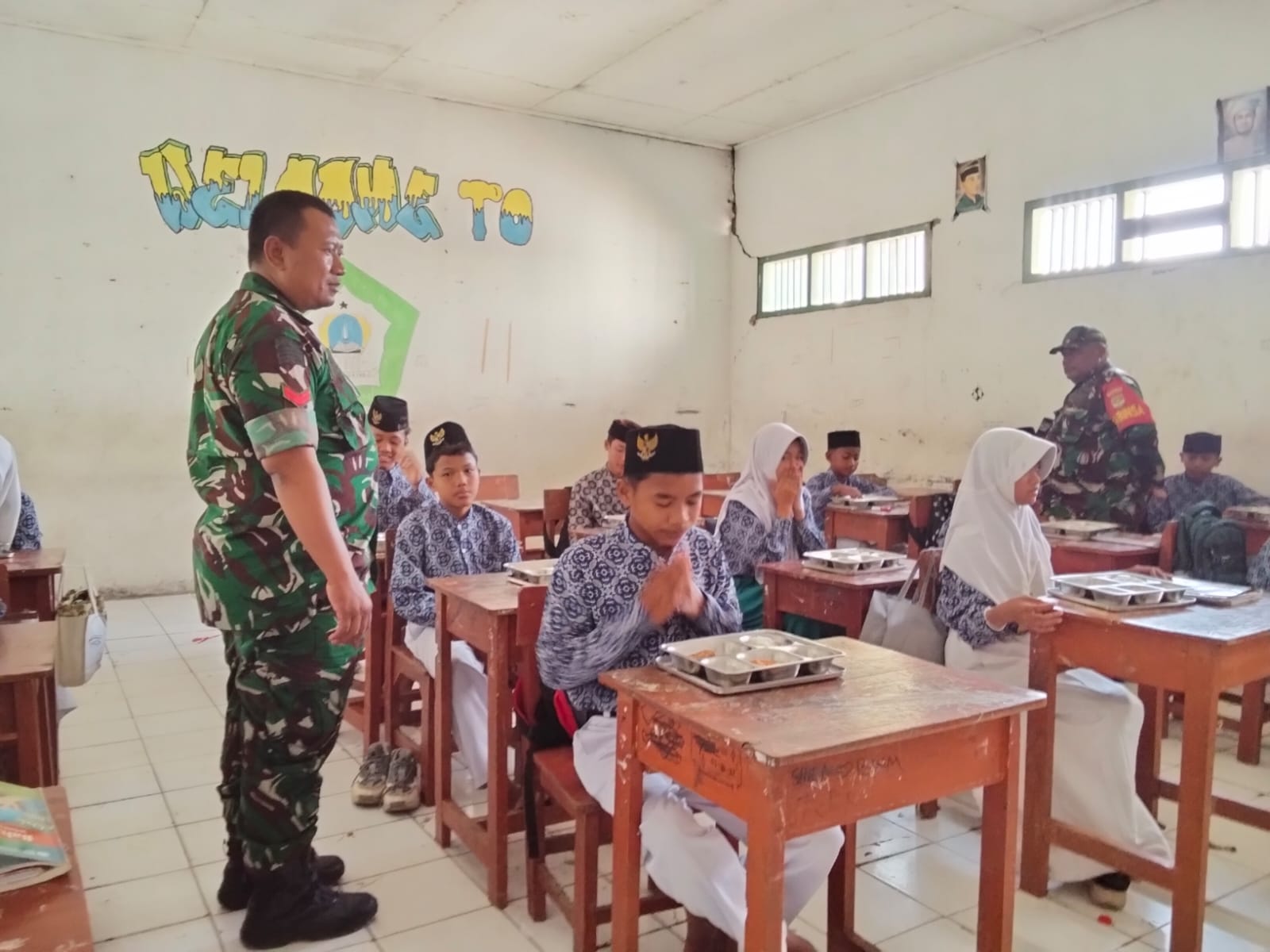 Bekasi Pebayuran – Dalam rangka mendukung program peningkatan gizi anak dan masyarakat, Koramil 11/Pebayuran Kodim 0509/Bekasi melaksanakan pendampingan kegiatan pendistribusian makanan bergizi dari Satuan Pelayanan Pemenuhan Gizi (SPPG) Pebayuran, Kamis (9/10/2025).