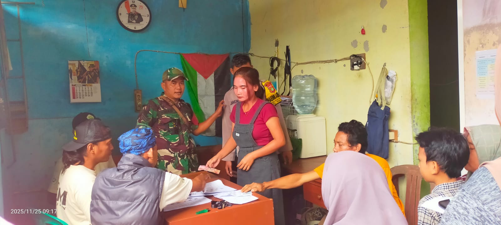 Bekasi, Pebayuran  — Penyaluran Bantuan Langsung Tunai (BLT) Tahap 1 kepada warga kurang mampu di Desa Karangpatri, Kecamatan Pebayuran, Kabupaten Bekasi berjalan aman dan tertib. Kegiatan berlangsung pukul 08.30 WIB di Kp. Kobak Pasir RT 002 RW 01 dengan pengamanan ketat dari Babinsa Desa Karangpatri Sertu Amar, Selasa (25/11/2025)